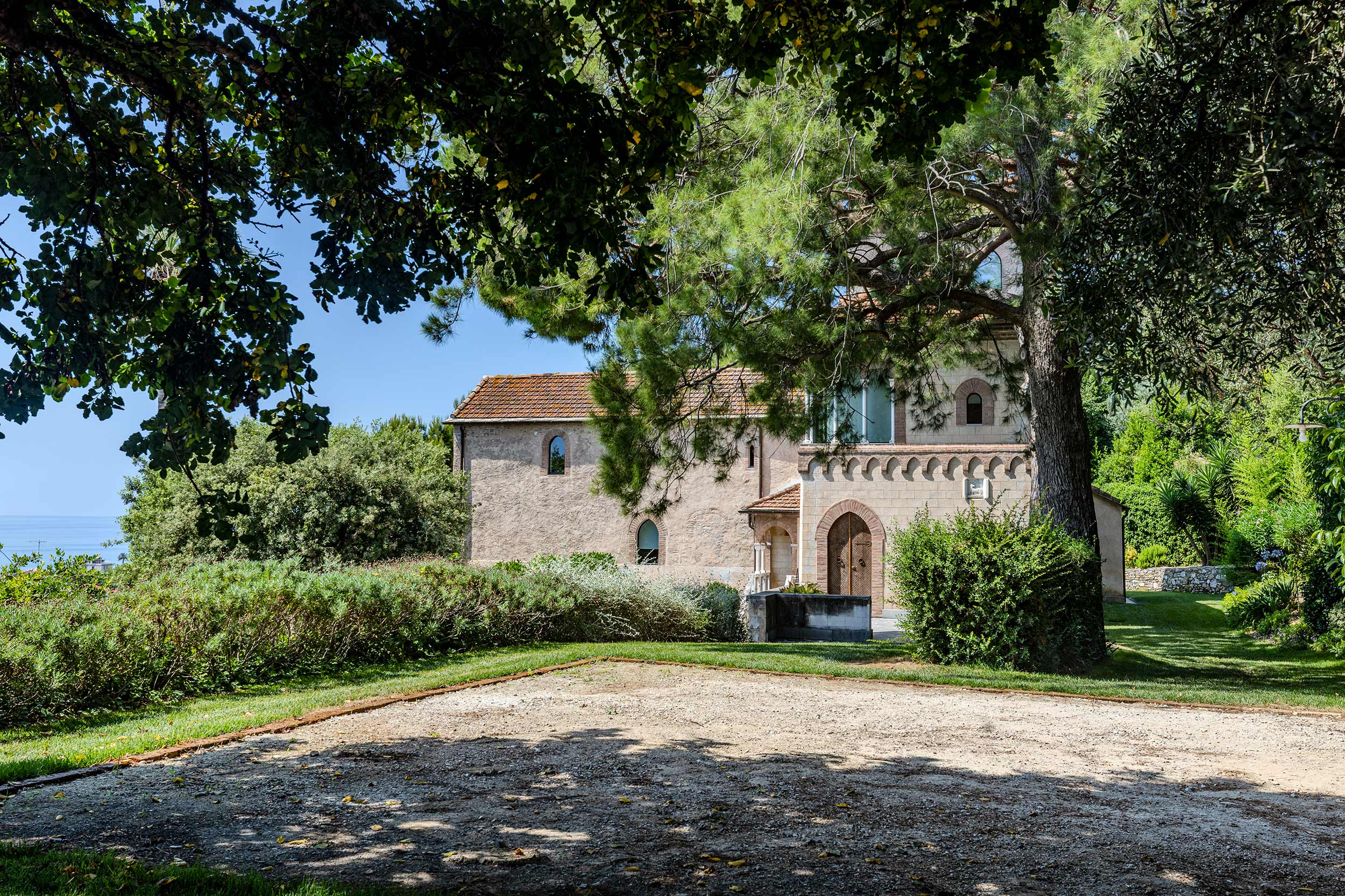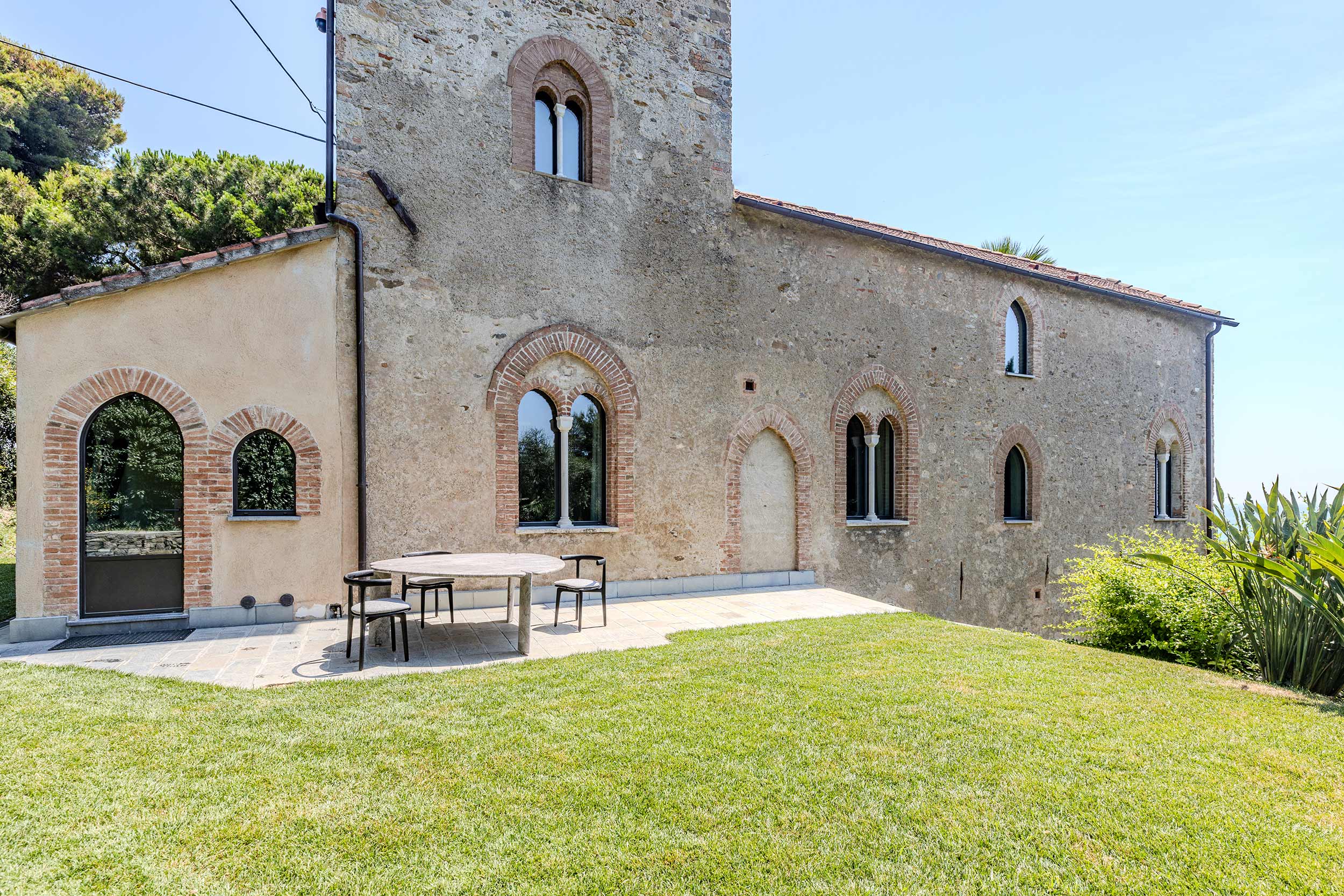 Villa San Martino, a former medieval abbey overlooking Isola Gallinara, is now a contemporary residence that preserves more than a thousand years of history. Founded in the 10th century as a monastic seat linked to the Benedictines of Gallinara and transformed in the late 19th century into a Neo-Gothic villa by Alfredo d’Andrade, the building stands as a rare example of architectural stratification, where medieval memory, historicist reinterpretation and contemporary restoration coexist in balance.